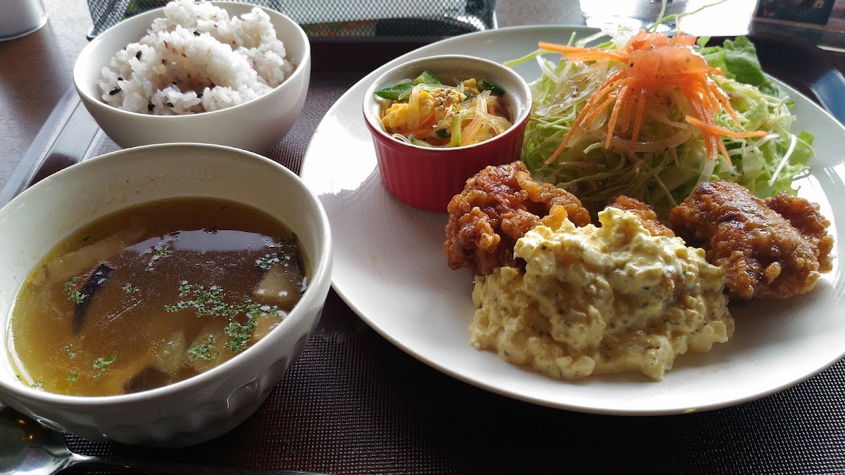 The cafe specializes in a delightful range of Japanese cuisine, emphasizing local ingredients and seasonal flavors. A favorite among patrons is the シーフードミックスランチ (Seafood Mix Lunch), artfully plated and bursting with fresh, ocean-derived flavors for JP¥1,540. For those seeking convenience, the cafe also offers a selection of bento options, starting from JP¥864 for お弁当A up to JP¥2,160 for the more elaborate お弁当D. Each bento showcases the region's bountiful produce, bringing the essence of Tottori right to your table.